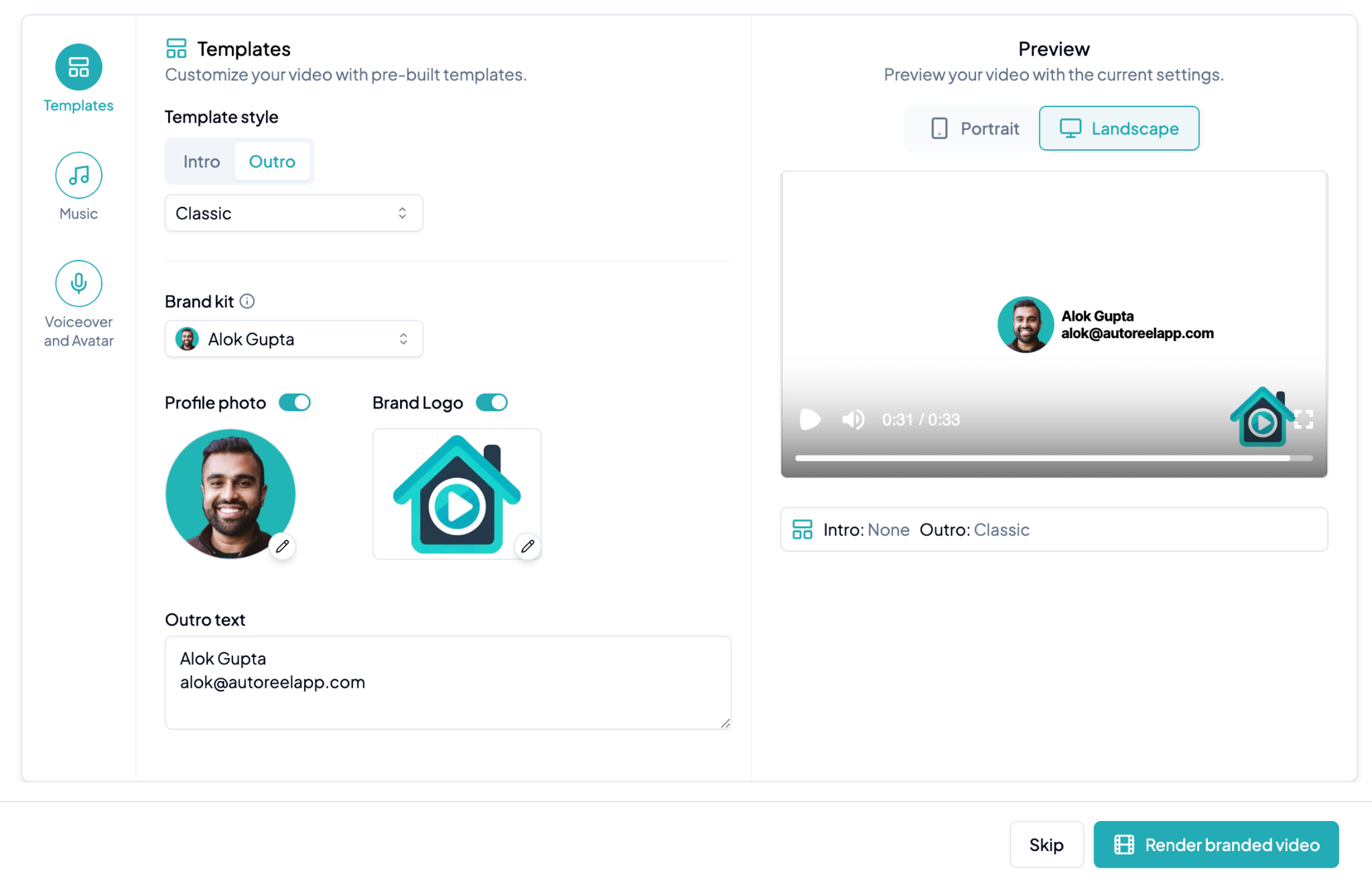 Manage multiple profiles: Running videos for multiple agents or brands? Create separate Brand Kits for each one and switch between them instantly.